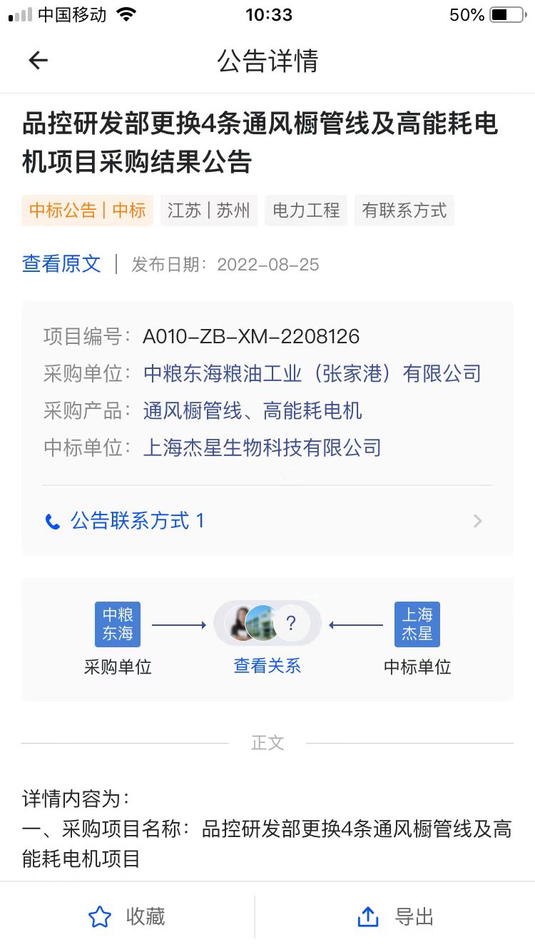 近日,在中糧東海糧油工業(yè)(張家港)有限公司有關(guān)更換通風(fēng)櫥管線及高能耗電機項目中,我司憑借過硬的產(chǎn)品質(zhì)量、扎實高效的工作作風(fēng)、卓越的運作團隊和良好的企業(yè)信譽,順利中標(biāo)。