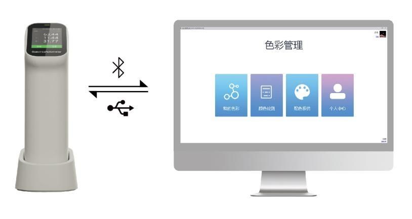 HC-210包裝中附送Windows色彩管理系統(tǒng)ColorExpert,通過藍(lán)牙或 USB線連接。