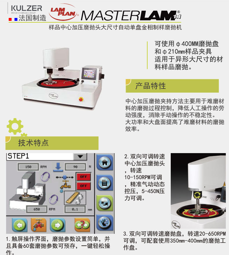 法國(guó)朗普朗(lamplan)大尺寸中心加壓自動(dòng)磨拋機(jī)MASTERLAM 1.1