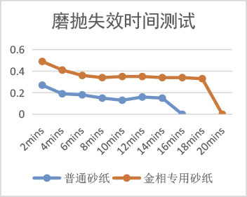 磨削失效測試:將砂紙安裝在磨拋機支持盤上,每磨2分鐘后對樣品稱重,在樣品水磨后連續(xù)三次質量差值不變則認為打磨失效。