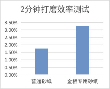 2分鐘打磨效率測試:將砂紙安安裝在磨拋機支持盤上,等壓強水磨2分鐘后對同尺寸樣品稱重,測量樣品在水磨前后的質量差值。2分鐘打磨效率=(水磨前質量-水磨后質量)/樣品原質量×100%