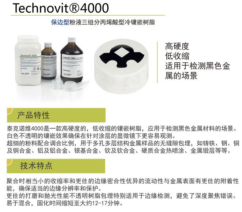 Technovit 5071主要應(yīng)用于一些樣品需要回收,貴金屬材料,需要SEM處理的應(yīng)用場景。能通過物理溶解或化學(xué)溶解對金相鑲嵌樹脂進(jìn)行溶解,最大程度保證樣品的完整性。除此之外,由于Technovit®5071具 有出色的粘結(jié)性能,還可被應(yīng)用于工業(yè)領(lǐng)域的金屬粘結(jié)及應(yīng)力儀測試。 化學(xué)可溶性(與丙酮,二氯甲院等互溶),對于耐熱的樣品,Technovit®5071在加熱到150℃時發(fā)生軟化。(150℃ 詳情請訪問 cqrichpe.com 上海杰星金相(金相切割機(jī)) |