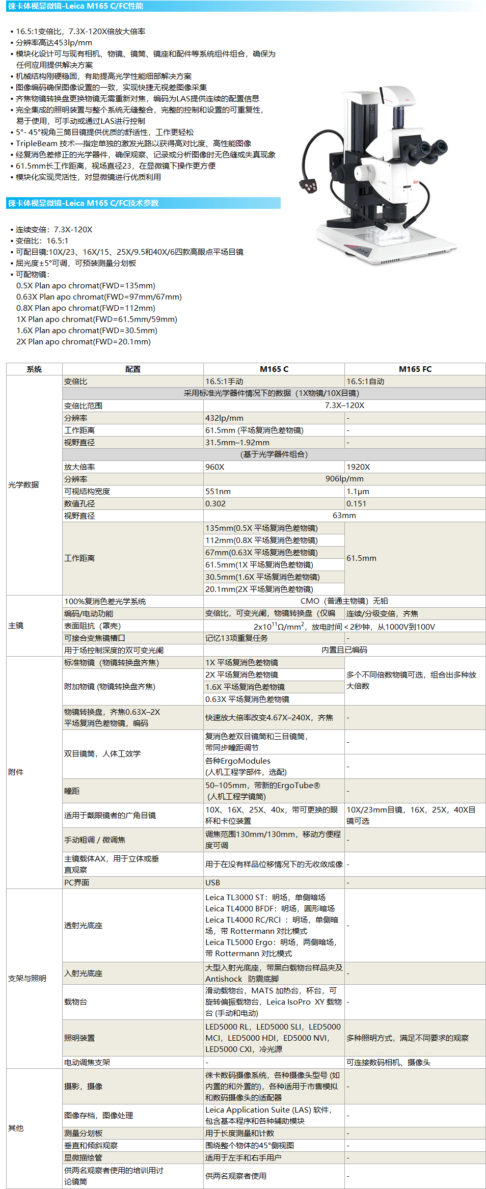 徠卡體視金相顯微鏡-LeicaM165C是新的體視鏡,有多倍率16.5:1和部件編碼,廣泛的變倍比和放大倍率,能管理各種類型的樣品。平場復消色差物鏡,滿足高質素影像材料分析和生物科學研究需要。采用先進的CMO光學設計,徹底消除雜散光等干擾因素;在整個光學系統(tǒng)內,對涉及成像質量的所有組件(物鏡、鏡筒透鏡、目鏡筒、目鏡、照相接口等)進行優(yōu)化組合的APO無限遠軸向、徑向雙重色差校正,實現(xiàn)圖像分辨率和反差的全優(yōu)化,得到銳利圖像的同時追求較高分辨率。