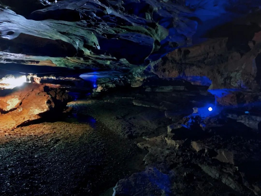 小伙伴們首先來到的是溶洞,洞內遍布形態(tài)各異的鐘乳石,洞中通道險峻、曲折、幽邃、變幻無窮,幽深不見底。洞內流水潺潺,歡聲雀雀,還有能發(fā)出聲音的響石,不可謂不是奇石奇洞。我們肩而行,或攜手而登,或涉足而過,感受溶洞中喀斯特地貌的奇觀,體驗“臉前鳥鳴樹,身后蝶戀花。有乳欲哺誰,無戲幕不拉。臥筍思七賢,敲壁想伯牙”的無窮樂趣。